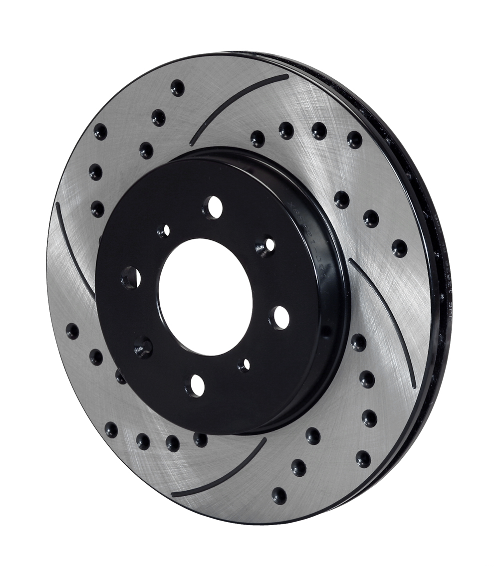 Wilwood SRP Drilled Performance Rotors har et spesiallaget retningsbestemt crossdrilled- og facemønster som forbedrer bremserespons og klossytelse gjennom hele spekteret av lett til tung nedbremsing. Ventilering- og rengjøringsytelsen til hullene og de slissede sporene vil redusere klosseglassering og sprer gass og varme generert fra klossen til skiven. Hullene og sporene hemmer også uregelmessig støvforbindelse på rotorflatene, noe som gir jevnere friksjon og forbedret pedalrespons under alle forhold. Fjernet materiale bidrar også til lavere rotasjonsvekt og bedre balanse under kjøringen.